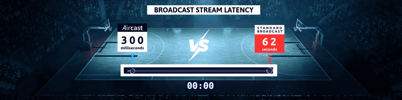 With Aircast, live truly means live. Traditional broadcast streams take a long detour — video is encoded, chopped into segments, sent across networks, and buffered by your device. Each step adds seconds of delay. Aircast cuts out those extra processes, delivering video and audio in under 300ms — faster than the blink of an eye. The videos below break down how latency is introduced and why it exists, while the side-by-side comparison shows how Aircast keeps fans perfectly in sync with the action, whether they’re in the stadium or at home.